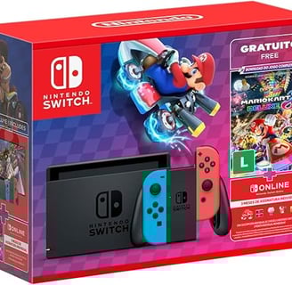 Prepare-se para uma aventura completa com o Nintendo Switch Azul e Vermelho! Este bundle inclui o console Nintendo Switch com controles Joy-Con nas cores vibrantes azul neon e vermelho neon. Aproveite a tela LCD de 6,2 polegadas e jogue seus jogos favoritos, seja em casa ou em movimento, com um console que se adapta ao seu estilo de vida. Ganhe o download digital completo de Mario Kart 8 Deluxe e corra em 48 pistas emocionantes do Reino Cogumelo, escolhendo entre 42 personagens. Com a assinatura de 3 meses do Nintendo Switch Online incluída, você pode jogar online com até 12 amigos, acessar uma vasta biblioteca de jogos clássicos e aproveitar ofertas especiais. Com armazenamento interno, modos de jogo flexíveis e a capacidade de jogar em qualquer lugar, este pacote oferece uma experiência de jogo imersiva e divertida. Não perca a chance de mergulhar nas aventuras de Mario e muito mais!