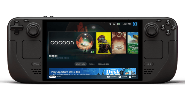 A tela de OLED HDR do Steam Deck foi projetada do zero para jogos, com contraste e clareza impressionantes, além de uma imagem maior. Com mais cores, pretos puros e uma incrível reprodução de movimentos, você verá os seus jogos sob uma nova luz.